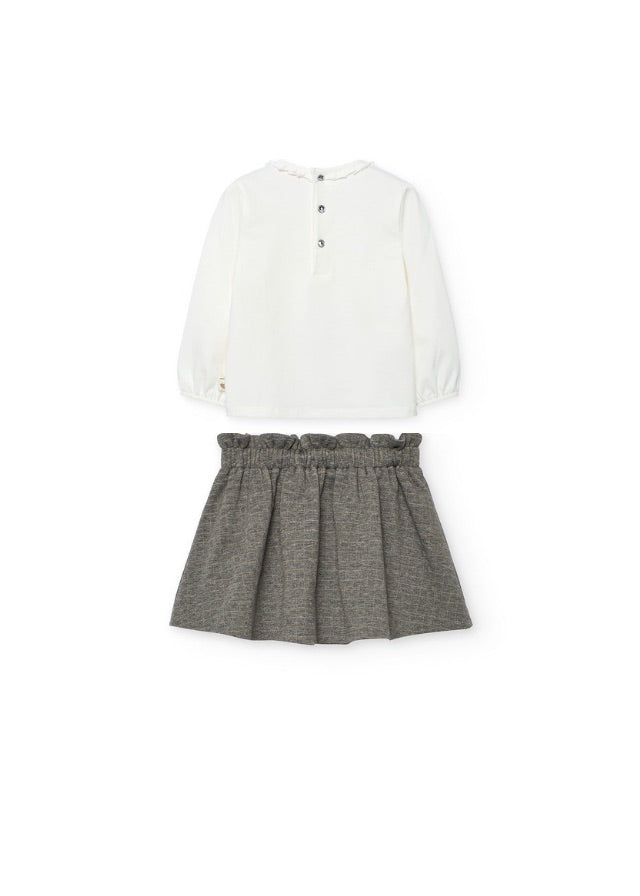Conj. Camiseta punto elástico y Falda punto cuadros