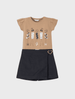 Camiseta de manga corta para niña. Elementos de adorno: dibujo en la parte delantera. Cómoda falda pantalón para...