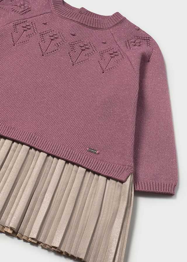 Vestido de manga ranglán para bebé. Cuello redondo. Diseño simulado con jersey en superposición. Cierre con botones...